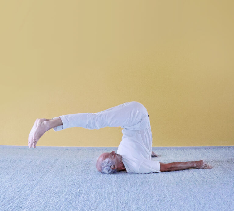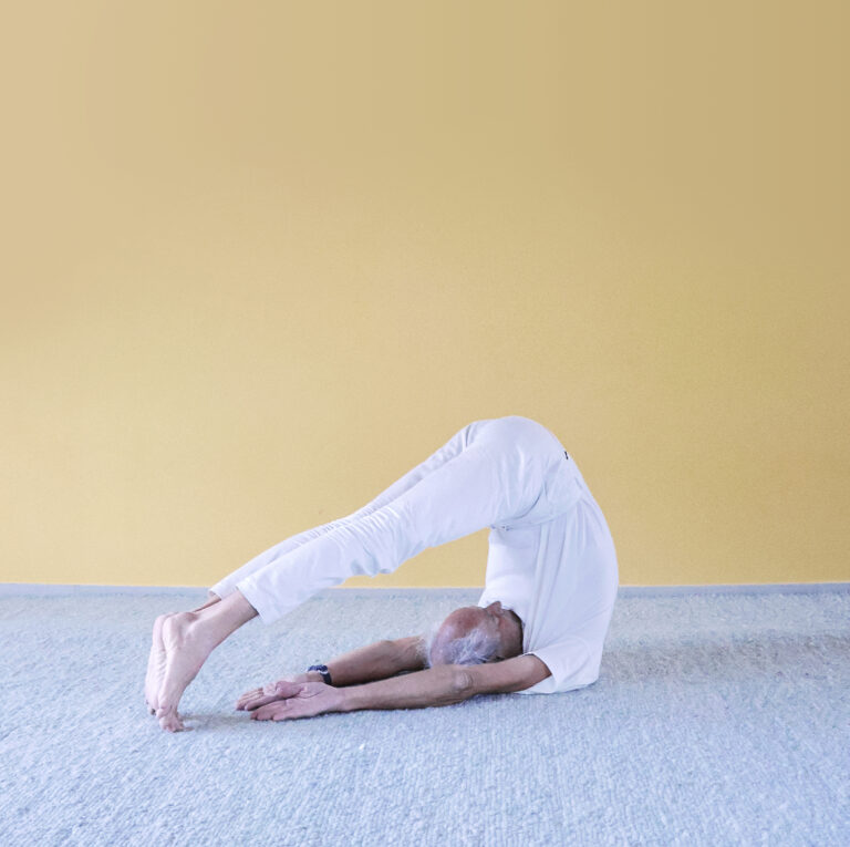 Pflug, Phase 2: Die zunehmende Spannkraft aus der Mitte der Wirbelsäule hebt den gesamten Oberkörper an und fördert eine Entlastung des unteren Rückens sowie einen gelösten Schulter-Nackenbereich.